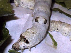 Silkworms (take a look at one here) feed only on White Mulberry leaves. As a domestic animal, they are fed until they reach a few inches in length. Once at full size, the caterpillars weave a peanut shaped cocoon (see here) and pupate within. The cocoons consist of a mile or so of continuous fine silk, so it is at this stage that they are boiled (killing the pupae, of course) and unraveled to produce commercial silk. Natural silk production is still practiced today, so silk purses are still available as far as I know.